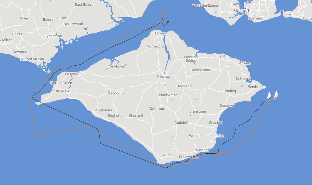 So we want to do a dog leg down the Solent; starting somewhere central off Cowes at the start then aiming for an imaginary point off Yarmouth pier then out to the Castle, then South West to the Needles.