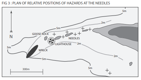 Cue much discussion; between the Skipper, Navigator and Helm, eventually we agree we want to go between the wreck and the Needles rocks.