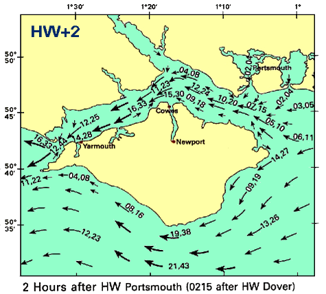 Peter Bruces book on Solent Tides (http://www.peter-bruce.com/books.html) and Winning Tides (http://www.winningtides.co.uk/pages/open.htm) are both good sources if you want to get into the real detail of where all the tidal back eddies are.