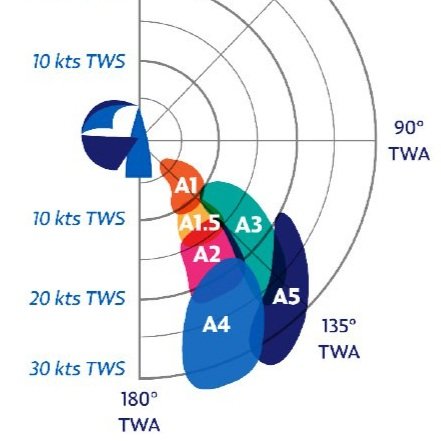 - Sail choice; No 1, No 2, A2, S5 etc