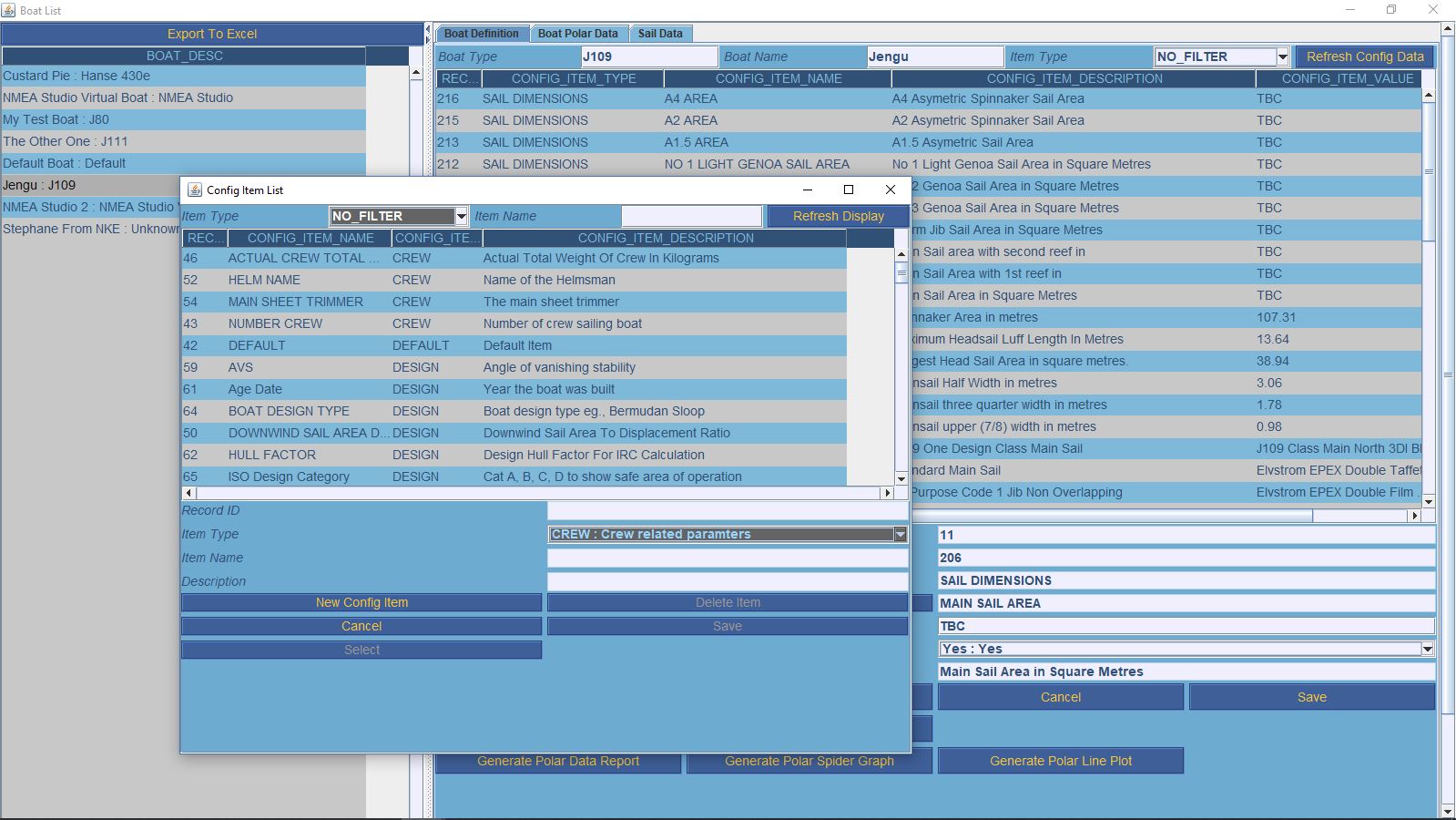 We can log the sails used, how the rig is setup and so forth. We can also make items active or inactive.