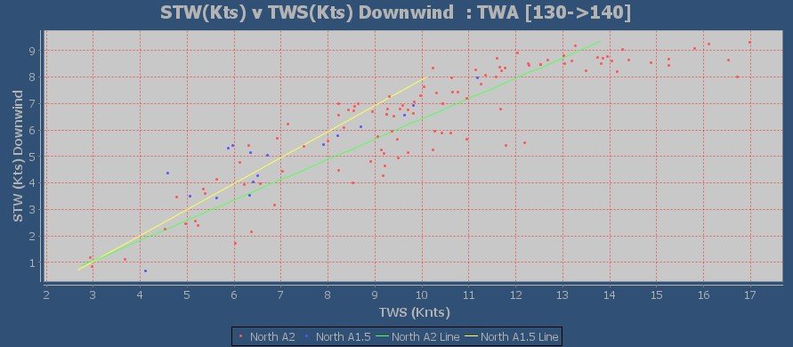 So we can build a chart to compare, for instance; the performance of our A2 spinnaker versus the A1.5 we have.
