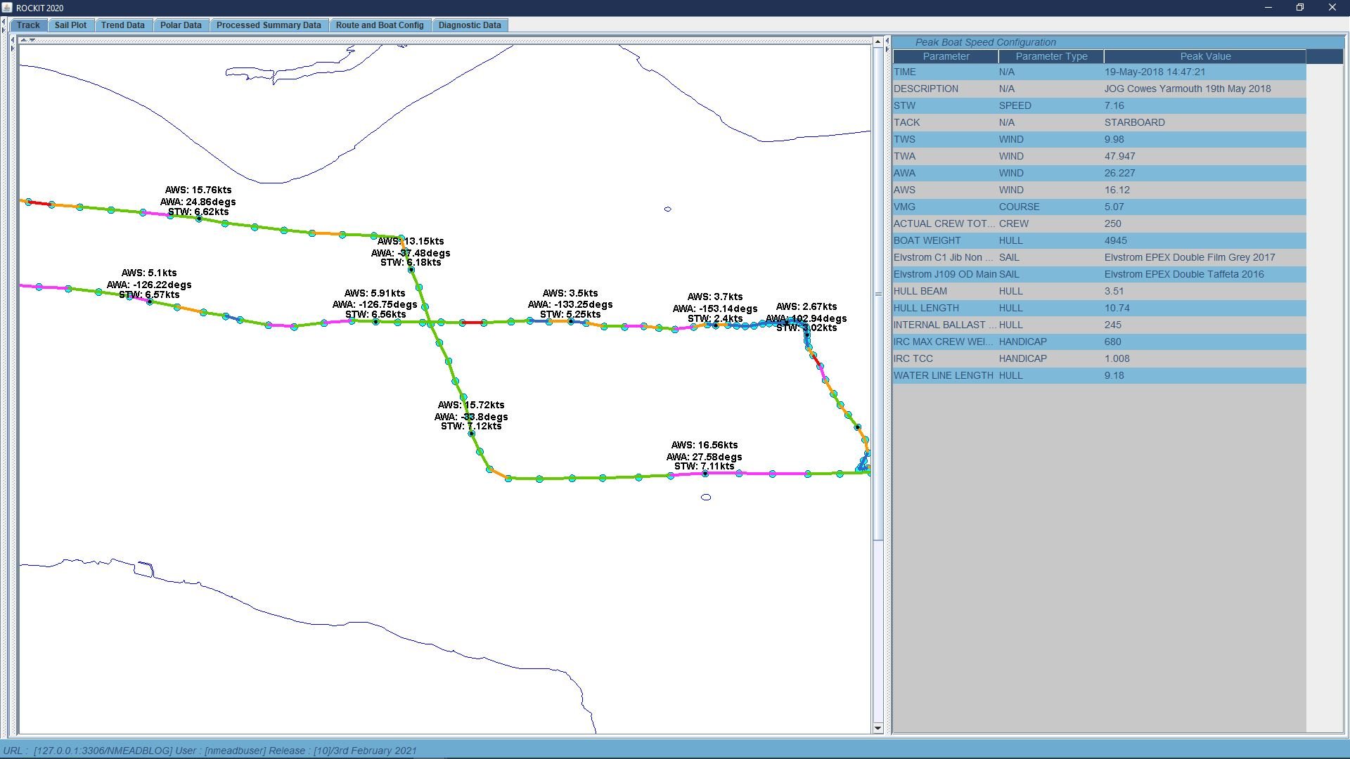 Rockit knows how relatively fast the boat was sailing and we have recorded the sails in use. Both those of the boat within the configuration and those that are actually actively being flown.