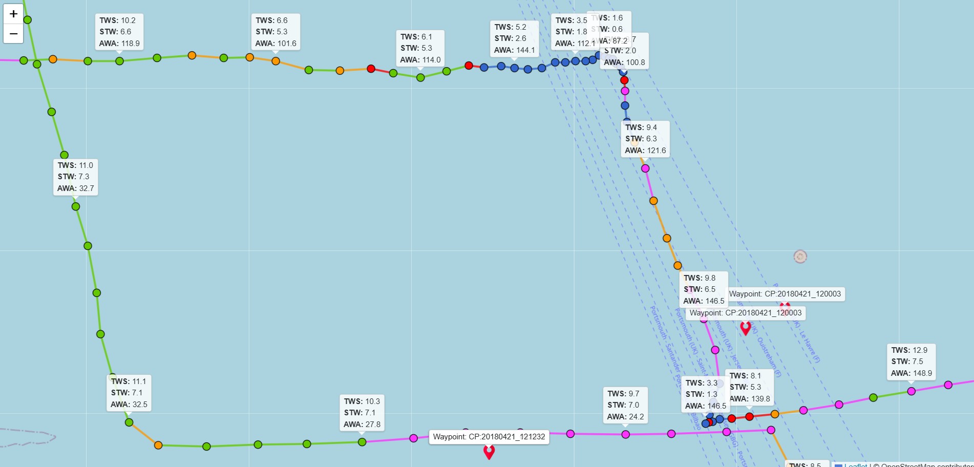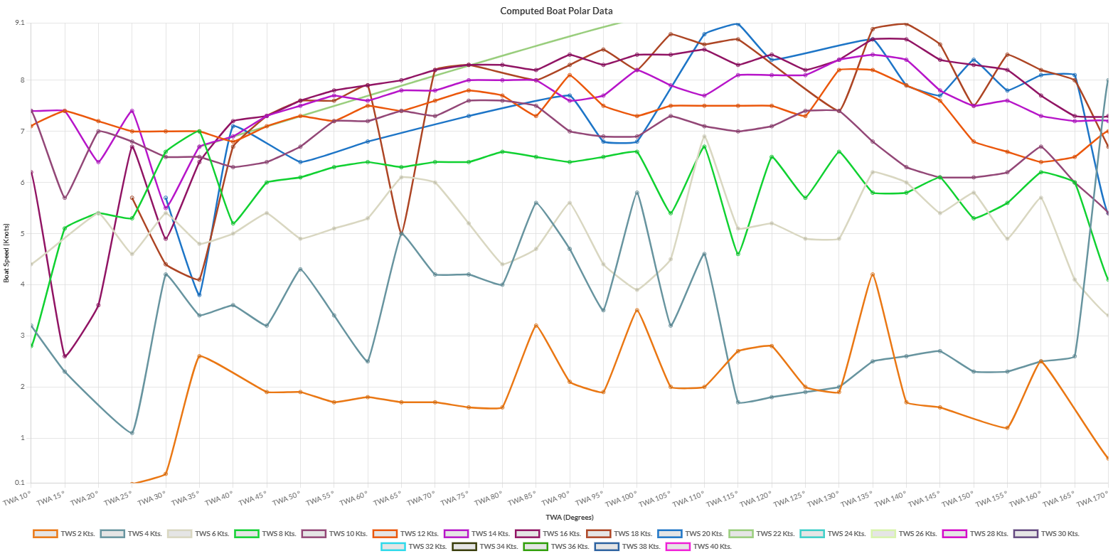 Overall with the more data we collect the better idea we have of how we can expect the boat to perform. But we still have a long way to go there are a lot of blanks on the Boat Polar data tables. I would expect the data values to get a smoother more separated curve as we get better as a crew and collect more data.