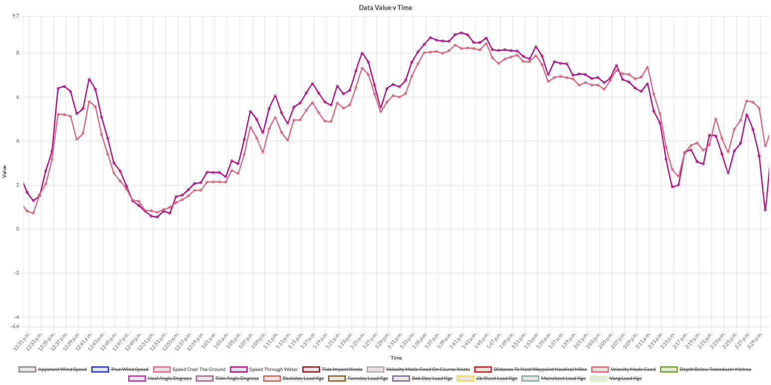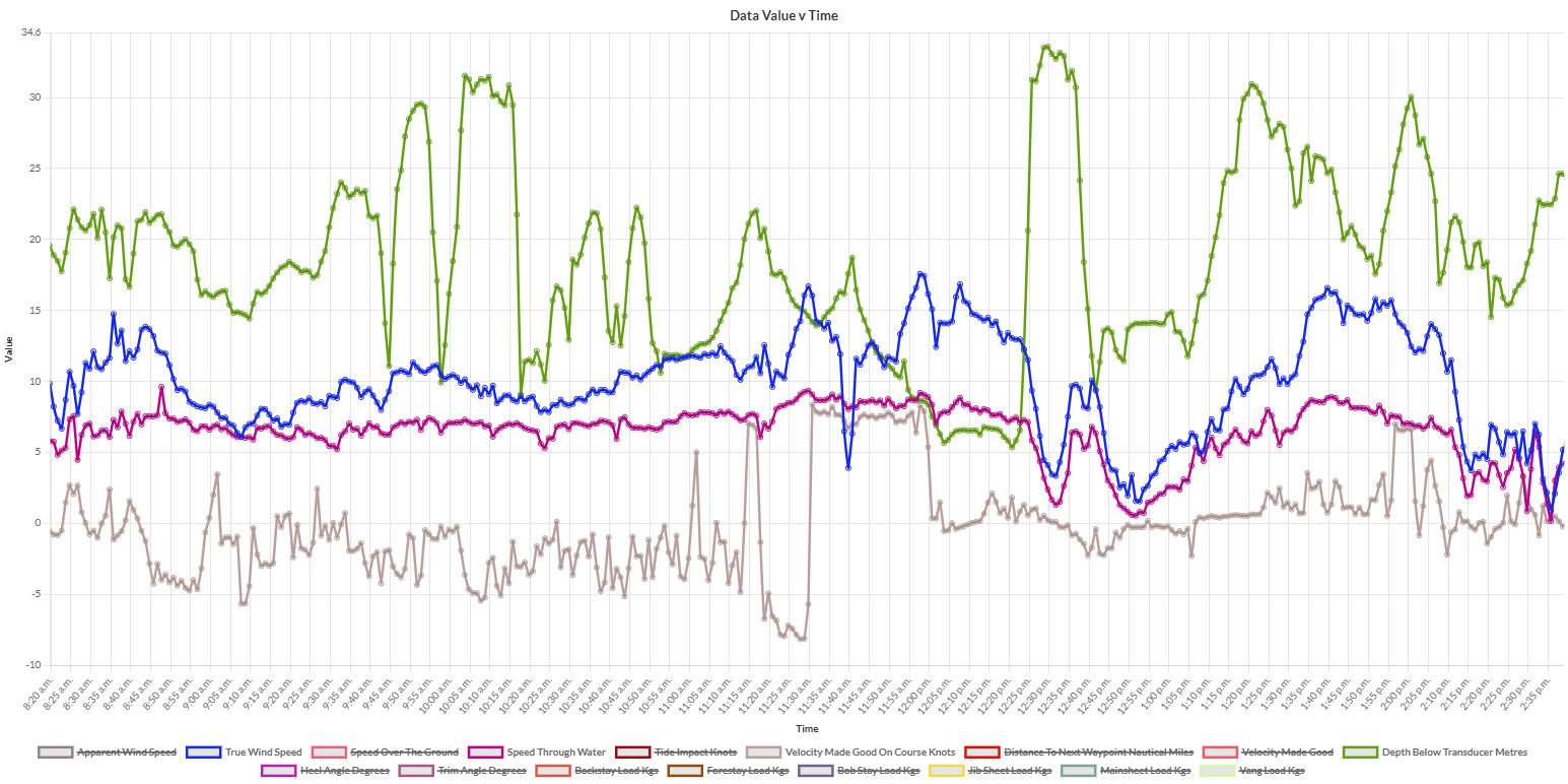 Editors Note : this image is from the current Rockit Analytics Platform. The interesting line is the Grey Velocity Made Good on Course line versus the Green Depth Below Transducer line.