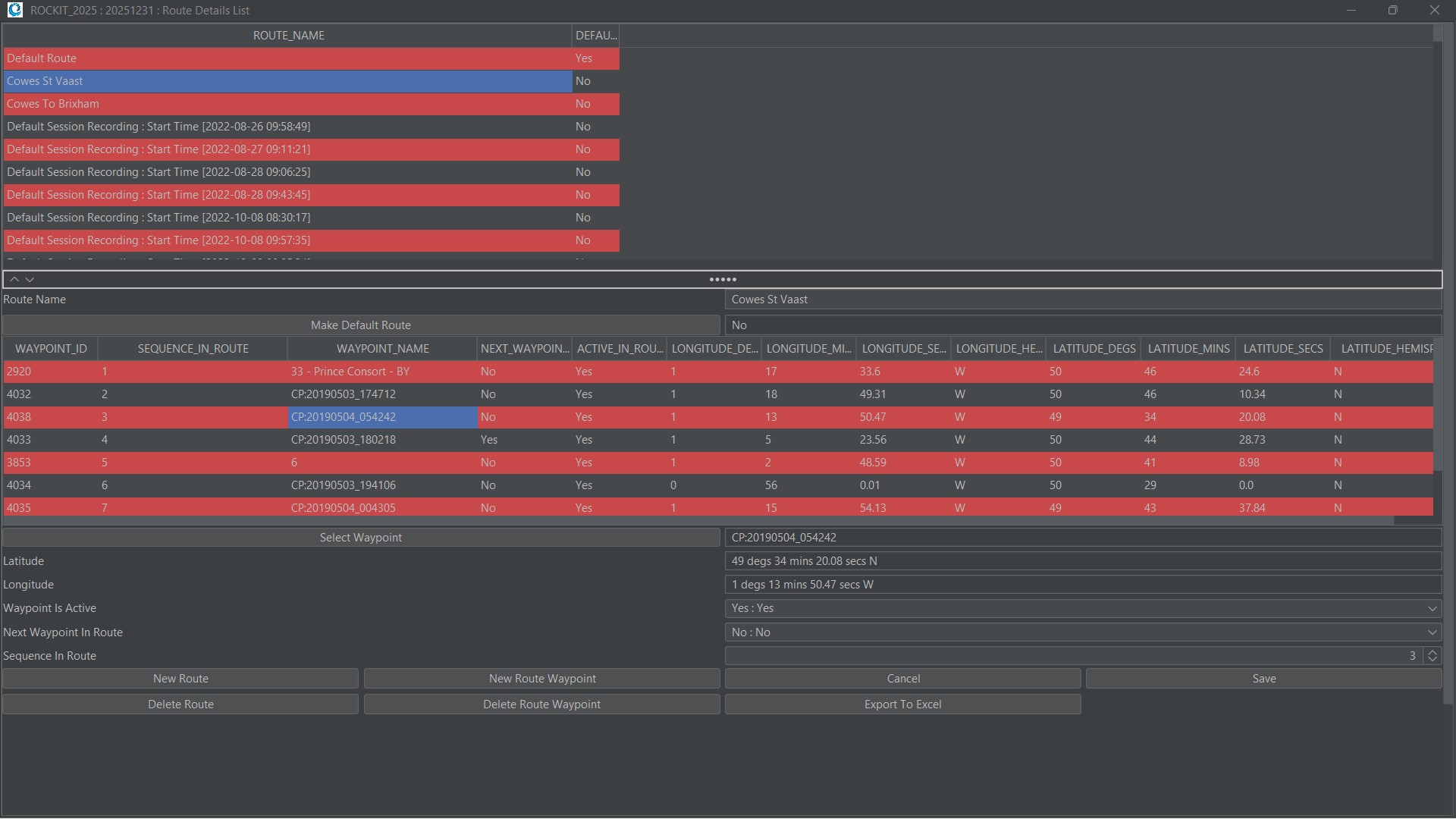 4. Press Save to add this Route Waypoint data to the Rockit database.