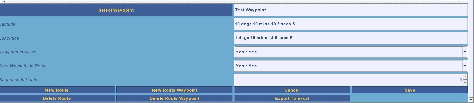 First press the New Route Waypoint button to create a new blank Waypoint record.