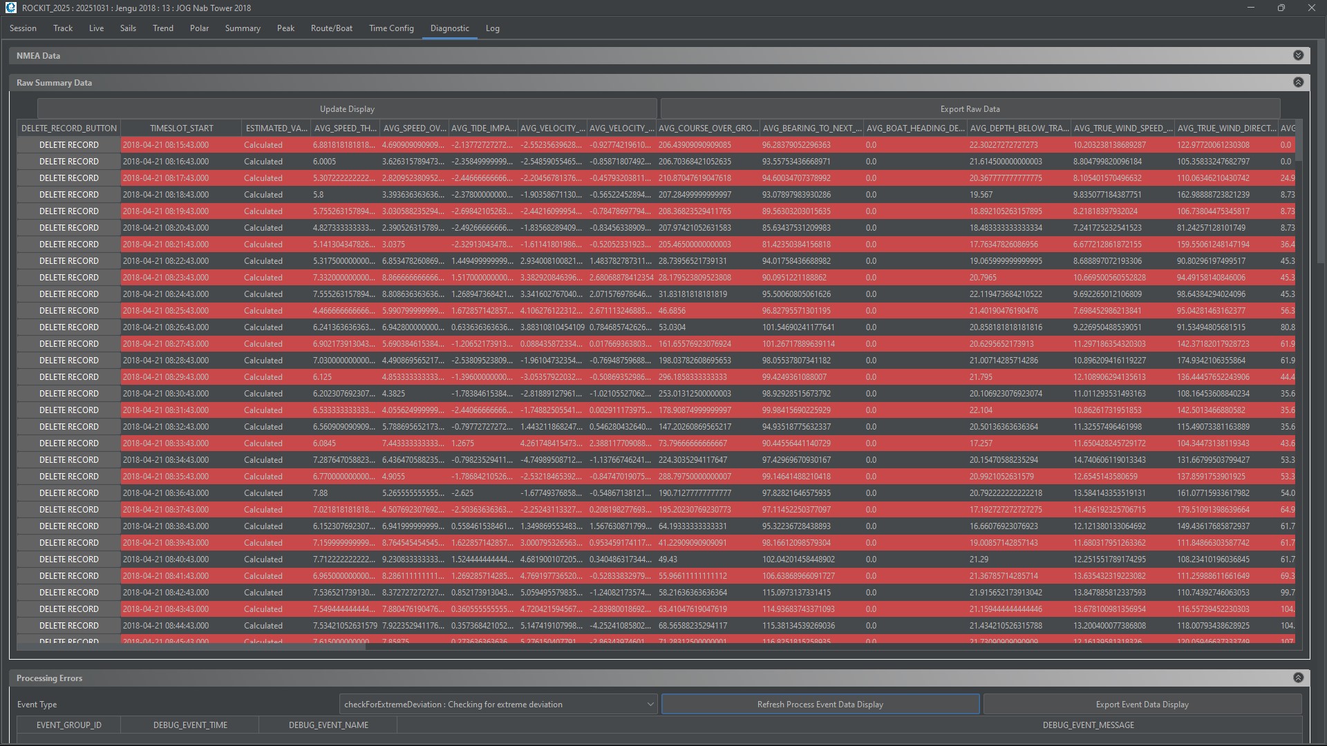 | Recalculate Summary Data | Rockit collects and stores NMEA raw data. It then creates from that a set of facts. From those facts it produces summary data. This function will recreate the summary data from the Facts. That process is less comprehensive than recreating all the summary and fact data from the raw NMEA data but a lot quicker |