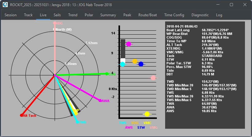 | Polar Data | This plots boat performance against true wind speed in both tabular and graphical form. |