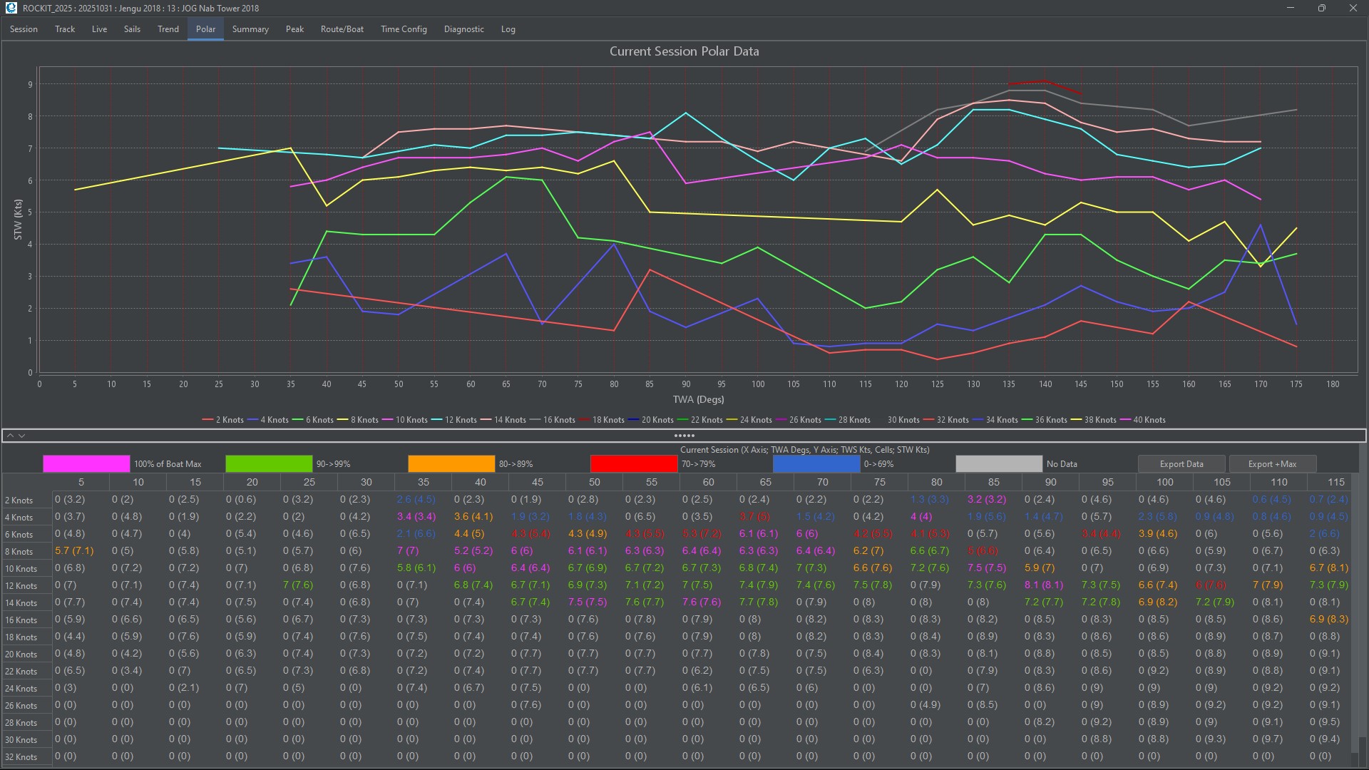 - Boat Polar data is the max value from all the sessions recorded for a boat for a given True Wind angle/speed.