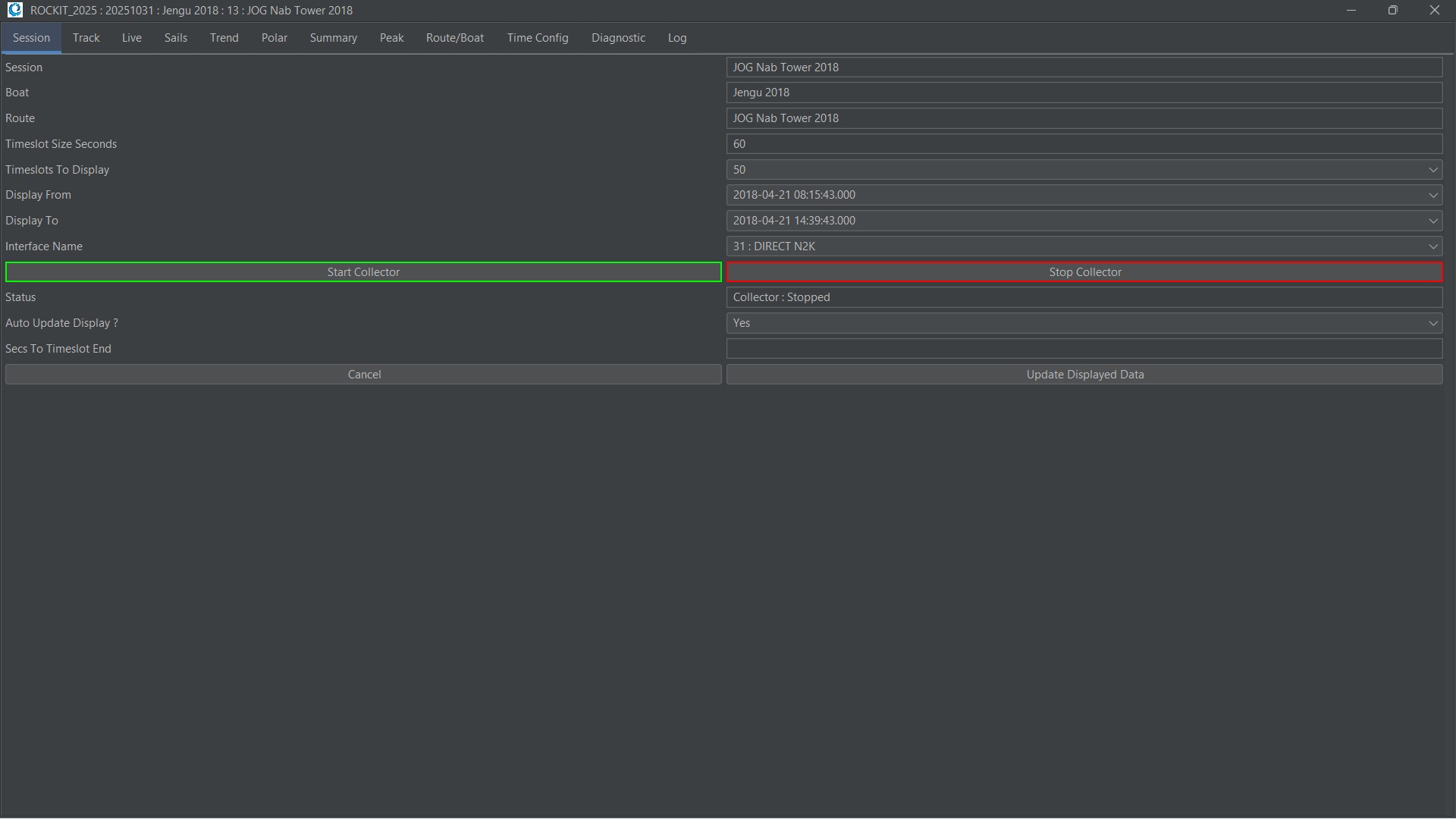 | Route | Either the Route you select sourced from the Routes entered on the Routes screen or the Route that Rockit generates while recording from Chartplotter Waypoints if the New Default Session is created. | Drop List | Yes |