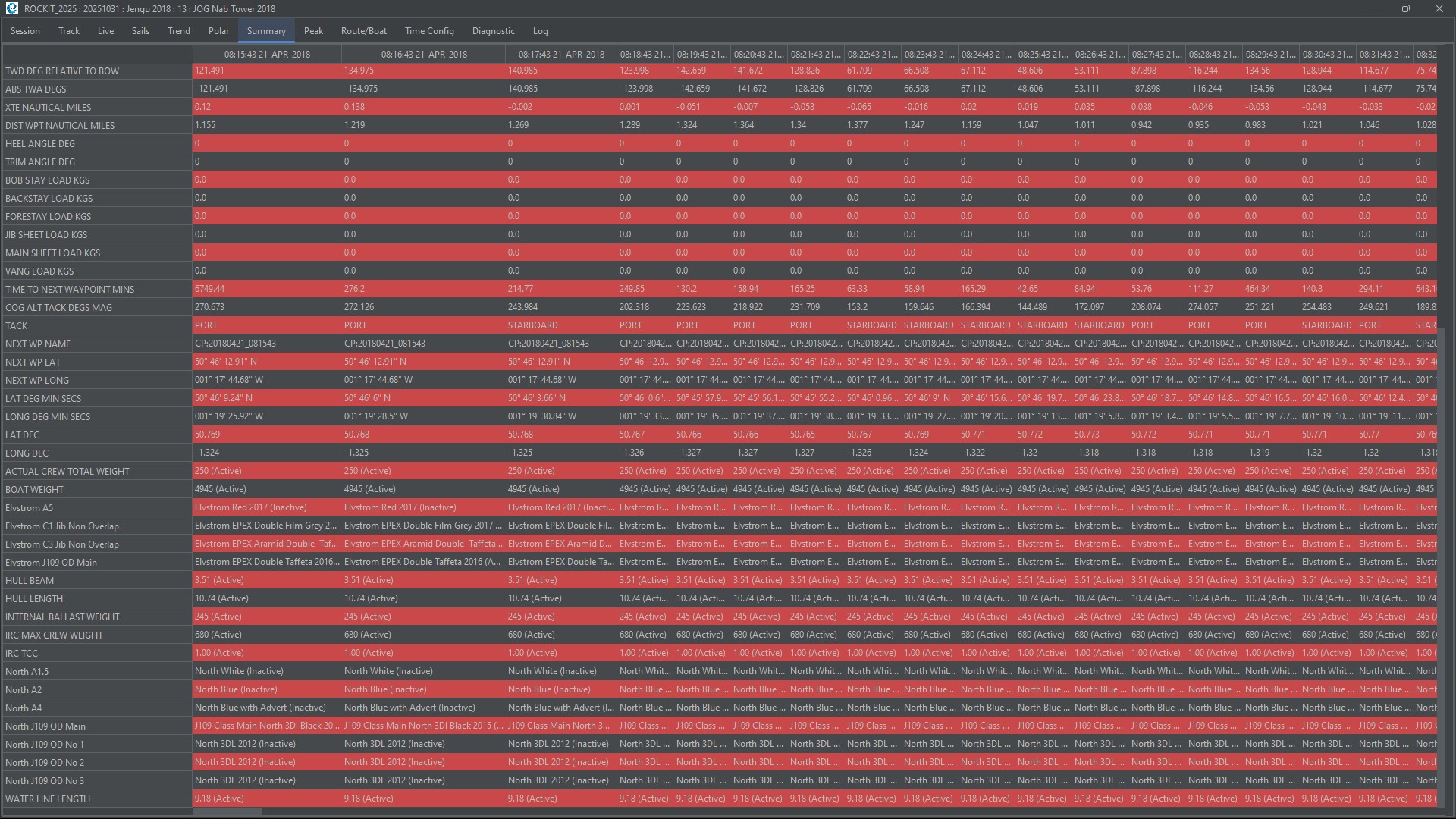 Rockit knows for each True Wind Speed and True Wind Angle the time at which the boat has performed best; it can pull back the boat configuration and related summary data at that point in time.