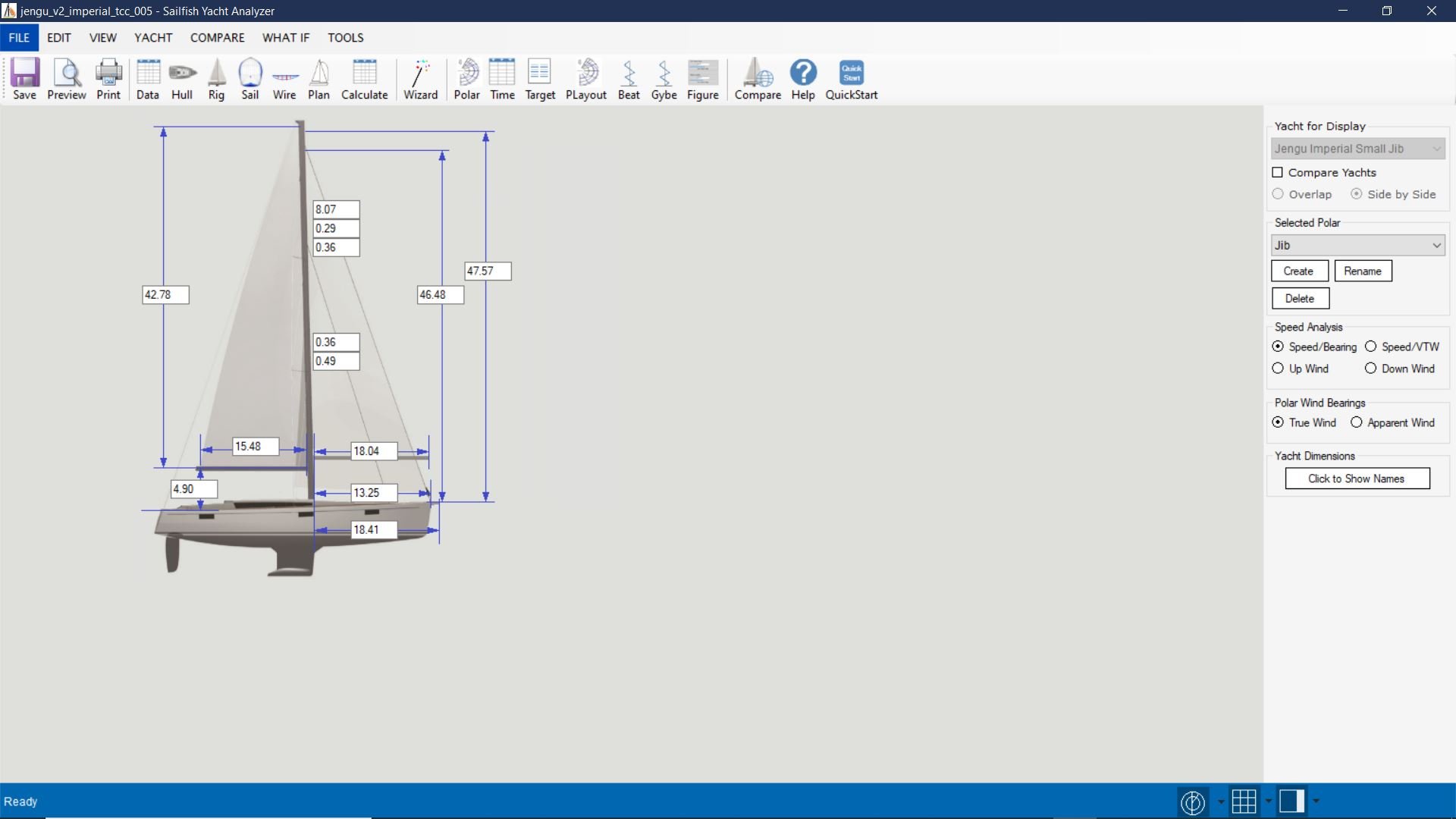 We use a Velocity Prediction Programme called Sailfish to calculate a base set of Polar Data for the Boat. Sailfish will compute basic Upwind and downwind boat speeds for different wind speeds/angles.