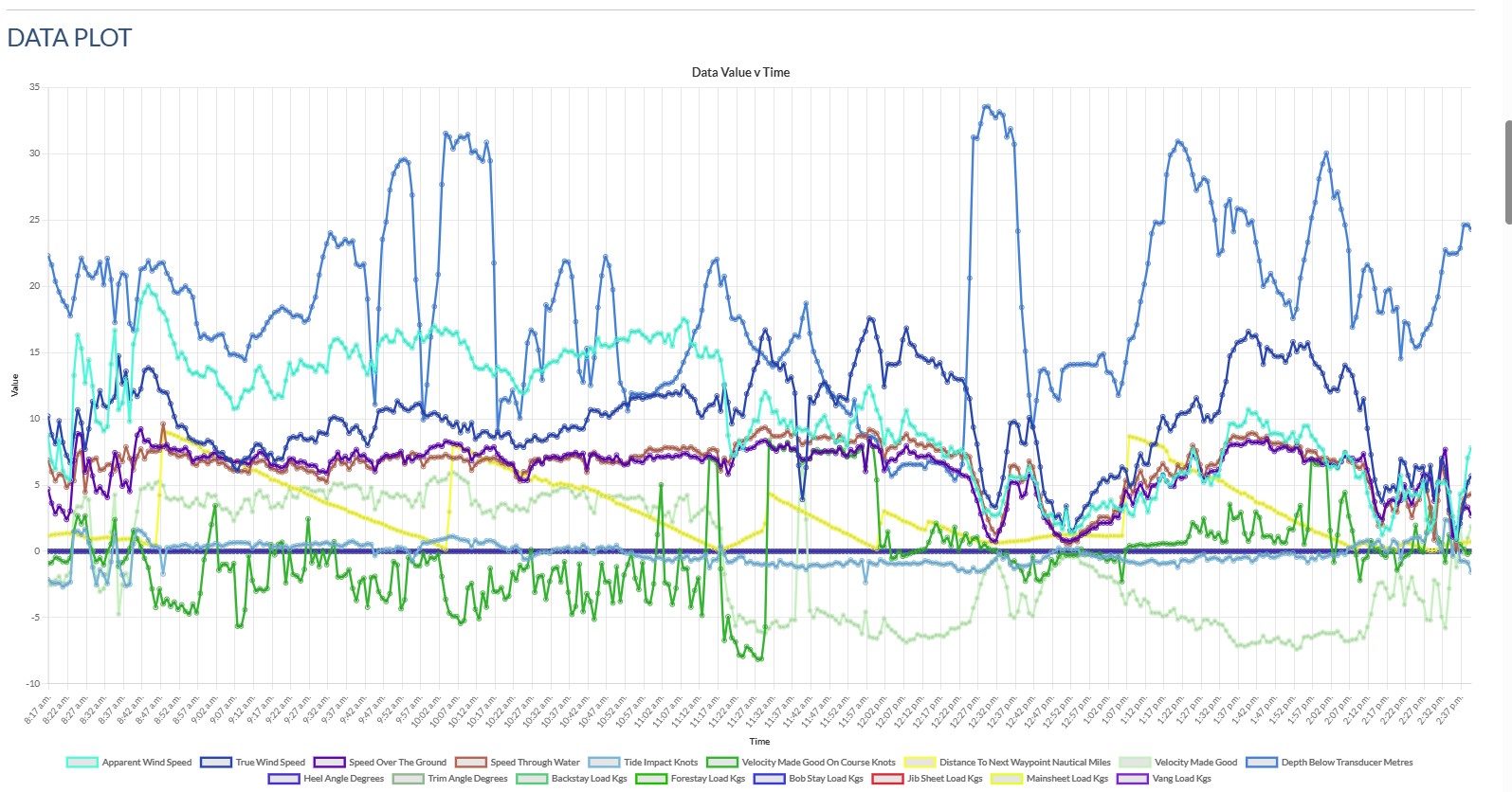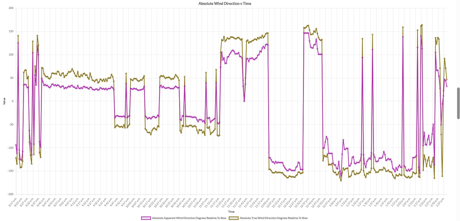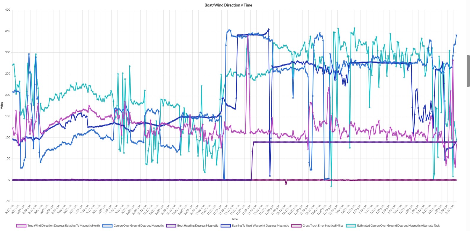 We plotted this one because we were interested in how high the boat was pointing. As with the previous graph the axis range made it easier to understand if it was on a separate graphic.