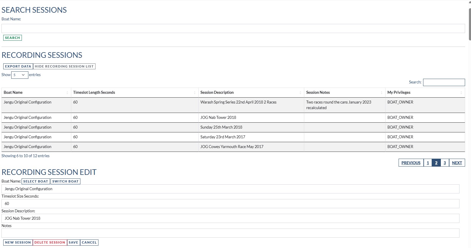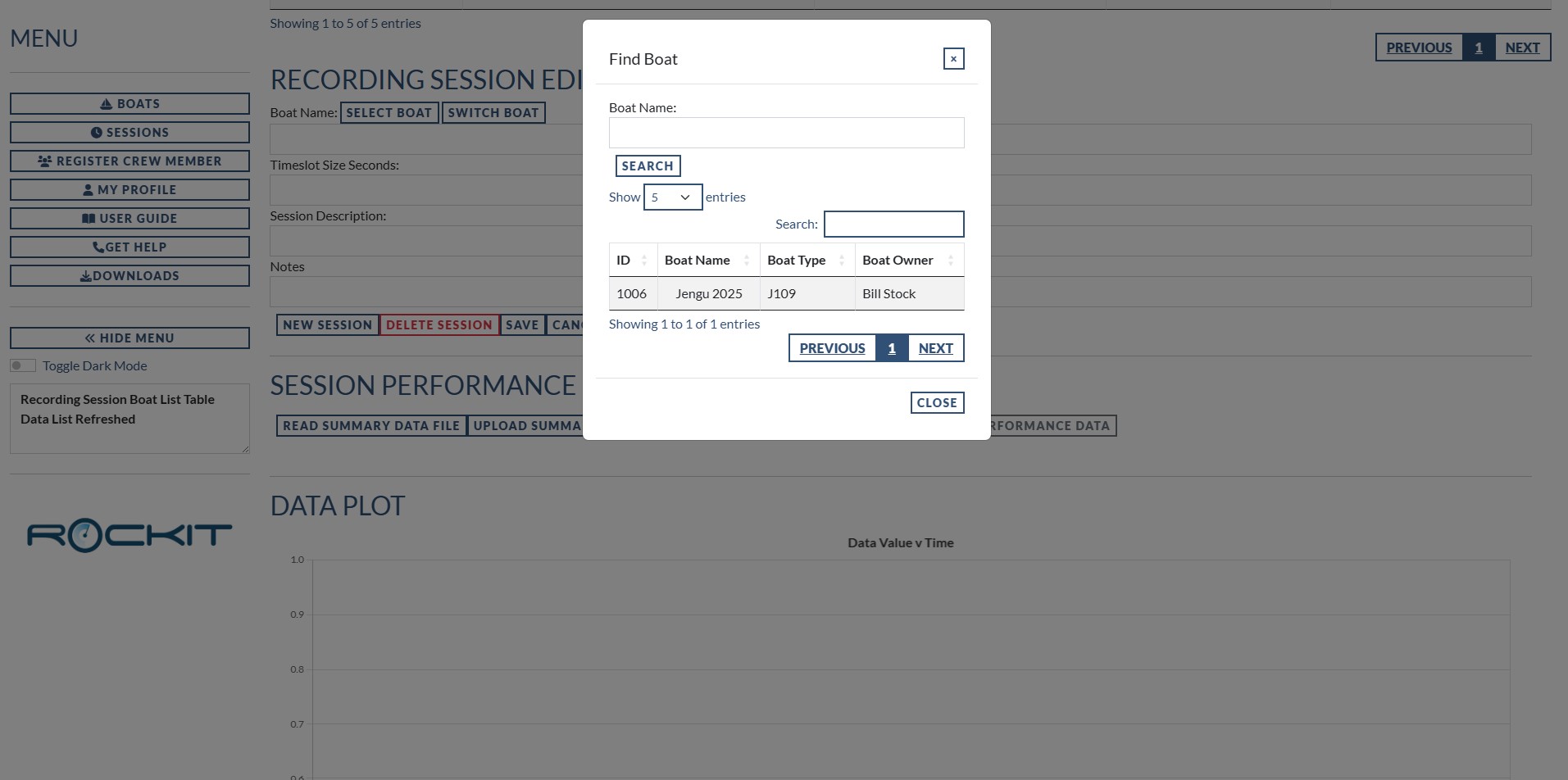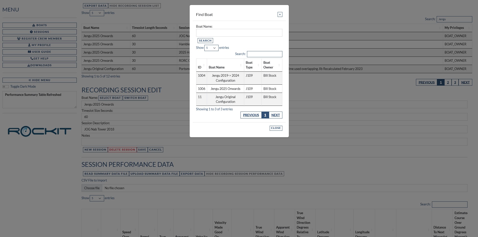 This gives you a list of the sessions that have been uploaded to the Rockit Analytics Platform that you have access to.  That can be because you are a Boat Owner or because you are a Crew Member for another boat and the boat owner has shared the boat information with you.  If the boat has been shared with you then you will have access to all of the sessions that have been recorded for that boat.