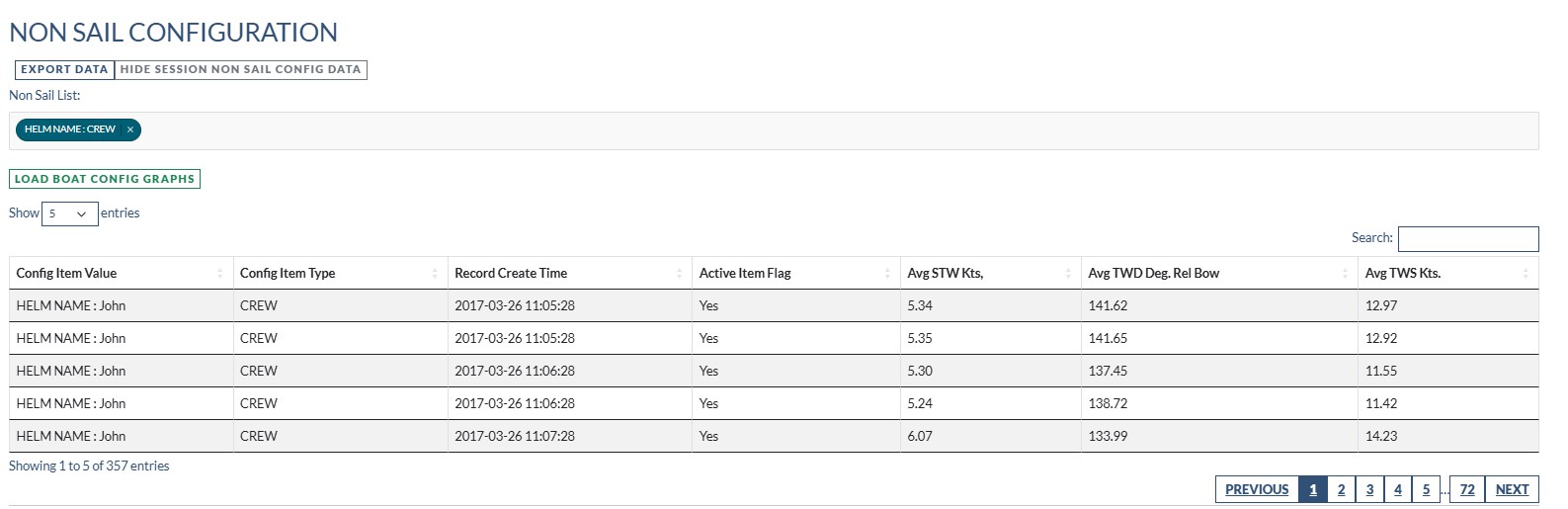 Non Sail configuration works the same way as the Sail  Configuration. You pick the item from the Non Sail List and click the Load Boat Config Graphs to pull the data into the screens and populate graphs.  This will pull any data point from the Rockit Analytics Platform database that doesn’t have a CONFIG_ITEM_TYPE equal to SAIL.