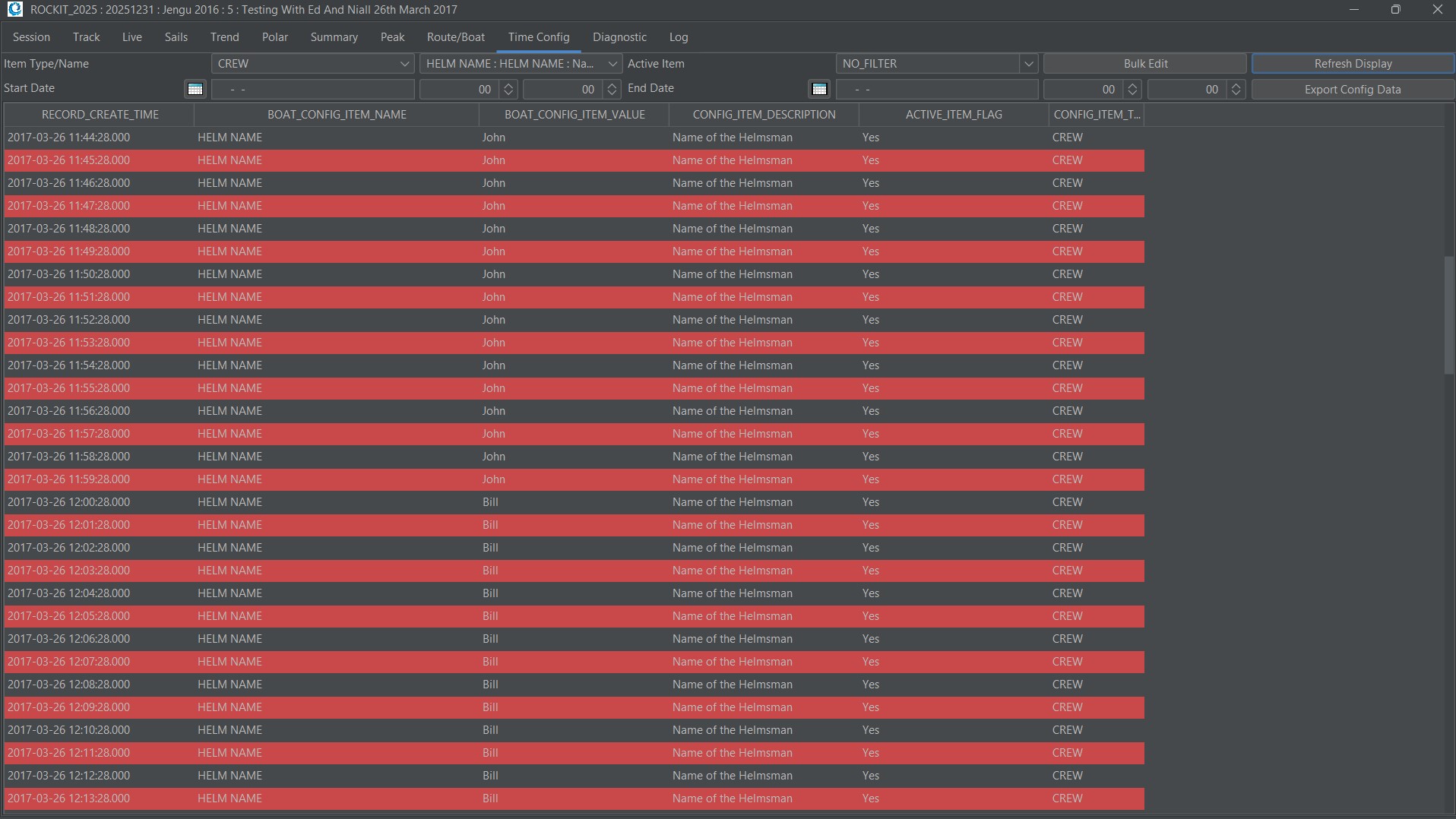 2. Alternatively you could create a series of Boat Configuration Items for different helms. HELM_NAME_BILL, HELM_NAME_JOHN and so on; you make that item active when they are helming. You can still edit that status within the Bulk Edit Screen in the Rockit software.